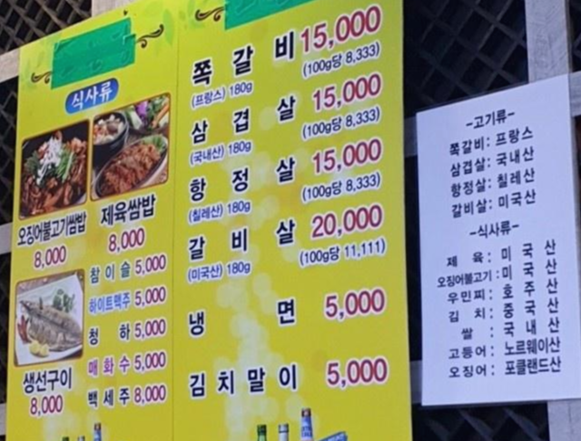 메뉴 : 쪽갈비 1.5만원