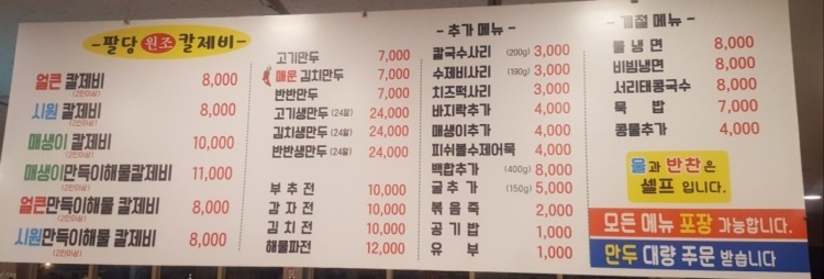 메뉴 : 시원칼제비 9천원, 얼큰칼제비 9천원