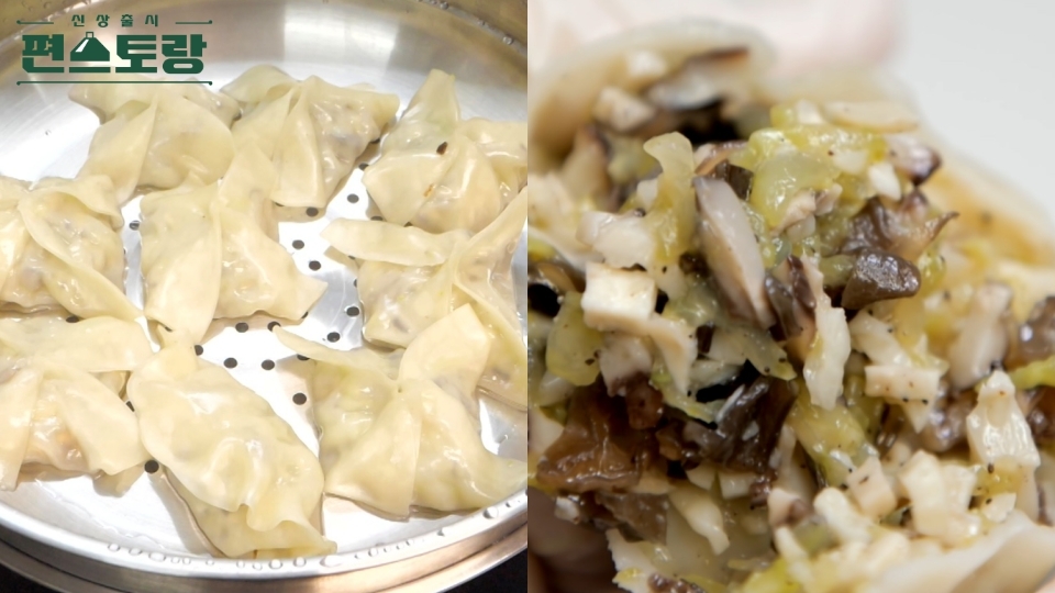 3. 찜기에 완성한 편수 만두를 넣고 6분간 쪄주면 완성!