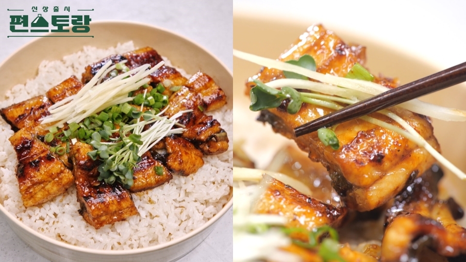 4. 그릇에 준비한 밥을 원하는 양만큼 담고 조린 양파와 장어를 가지런히 올려준다.