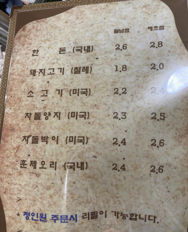 메뉴 : 월남쌈 16,000~30,000원