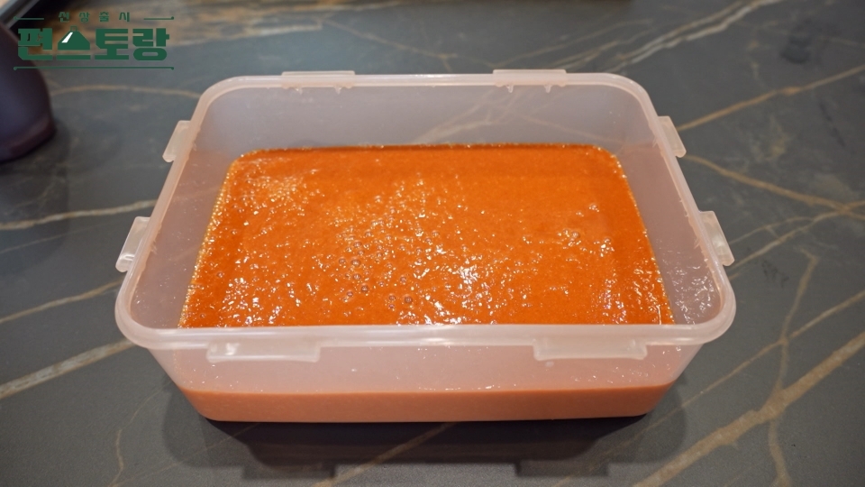 1. 만능 과일 비빔장에 냉면 육수 500g을 넣고 섞어준다.