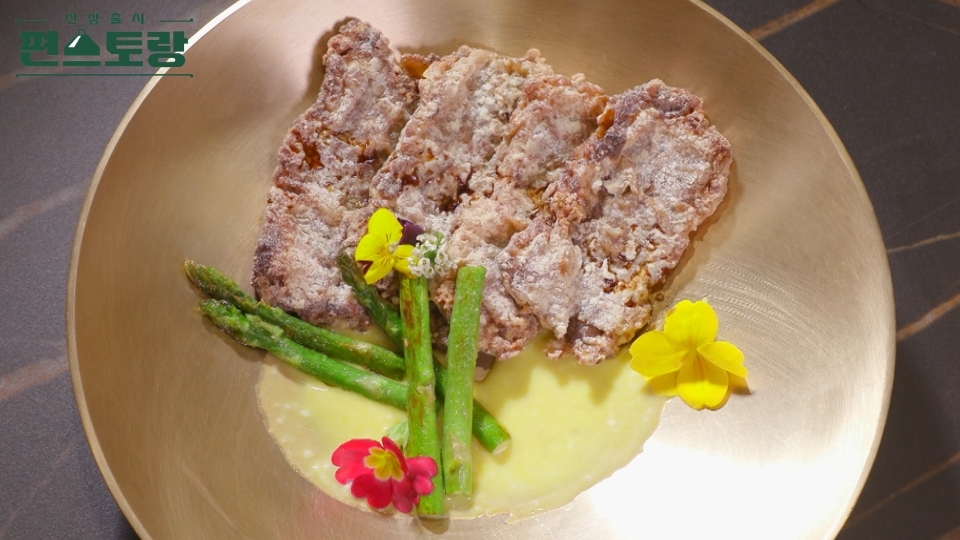 꽃갈비, 달걀흰자, 건식 찹쌀가루, 아스파라거스, 식용 꽃