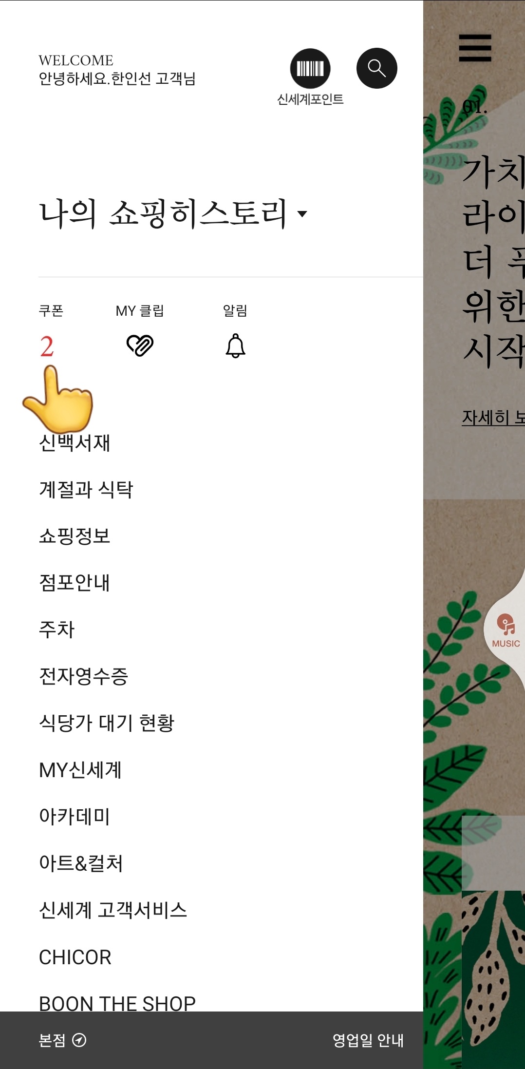 나의 쇼핑히스토리 쿠폰 아래 빨간색 숫자 2가 뜬다