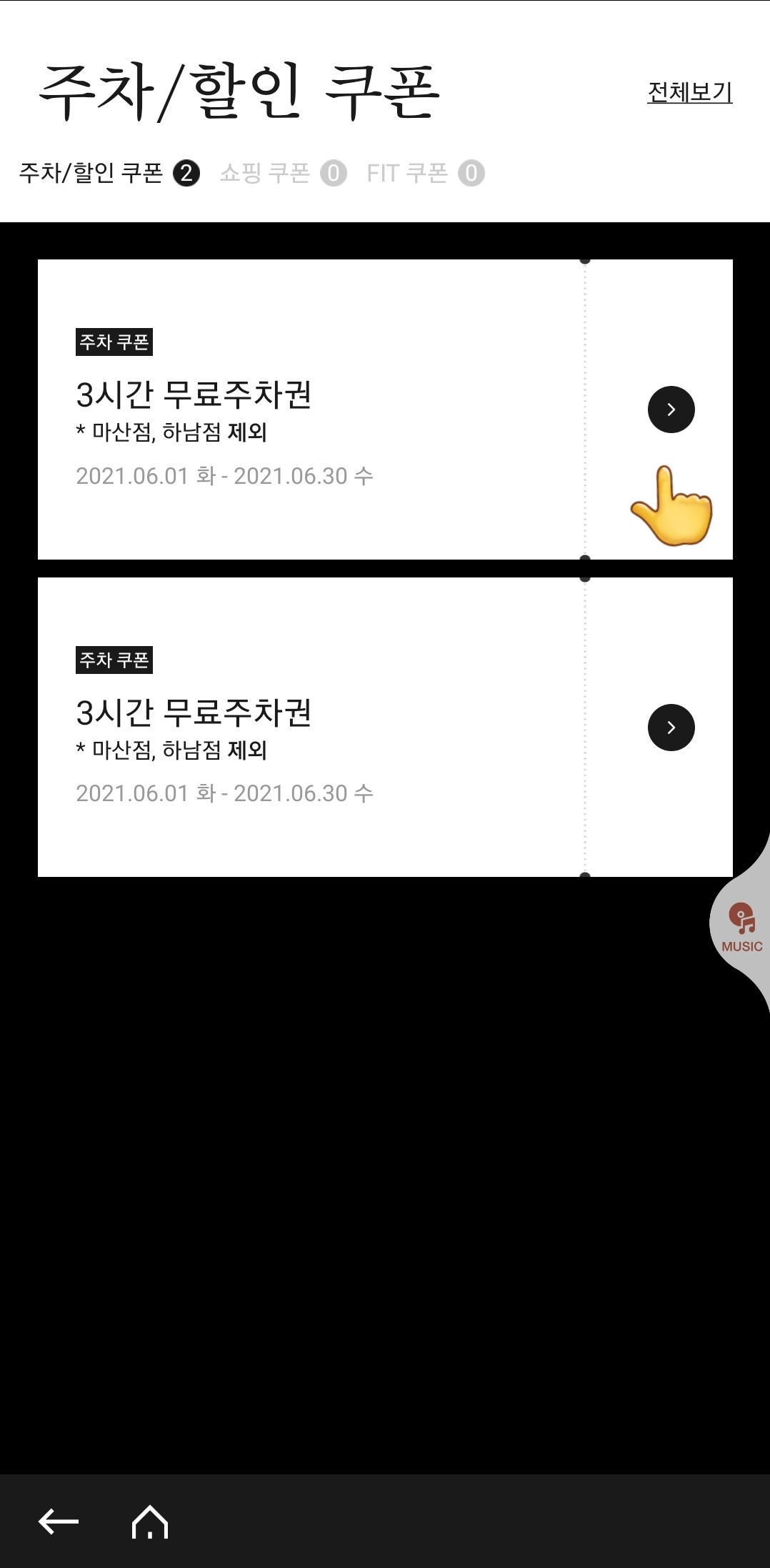 쿠폰 선택 - 주차/할인 쿠폰 선택