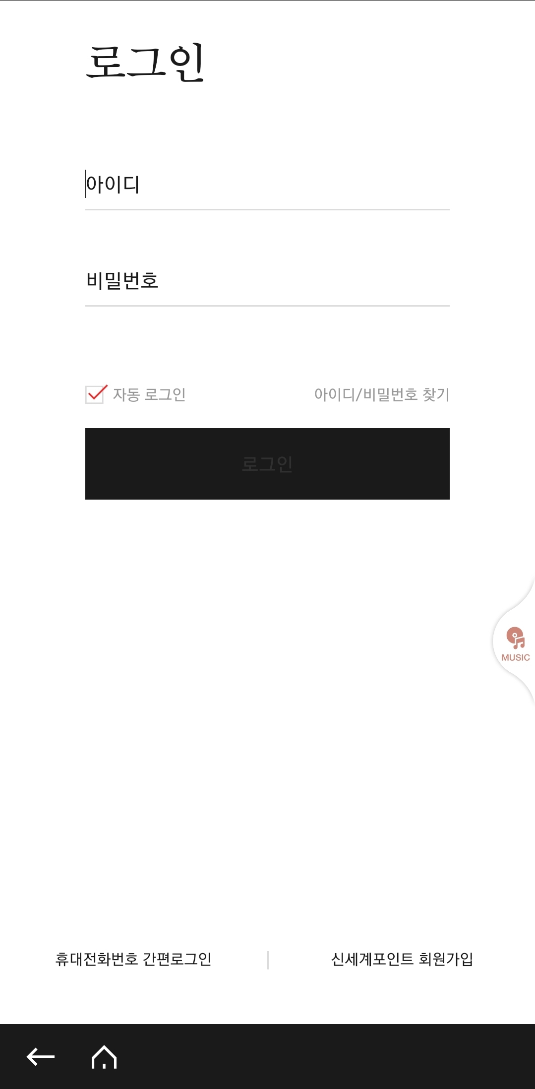 이용지점 선택 - 왼쪽 상단 세줄목록 선택 후 - 로그인