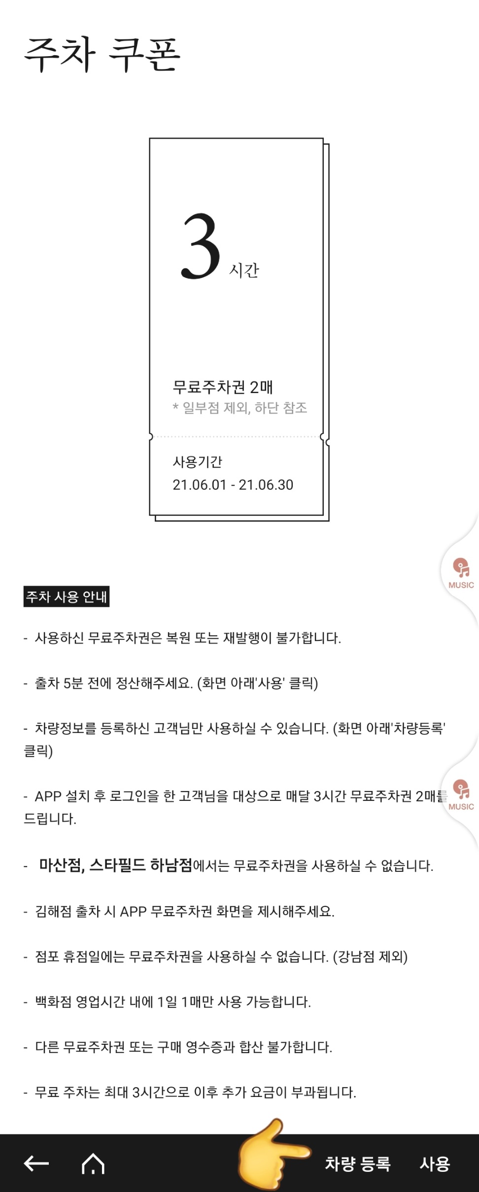 신세계 백화점 어플만 있으면 회원가입 후 무료 주차권을 받을 수 있다