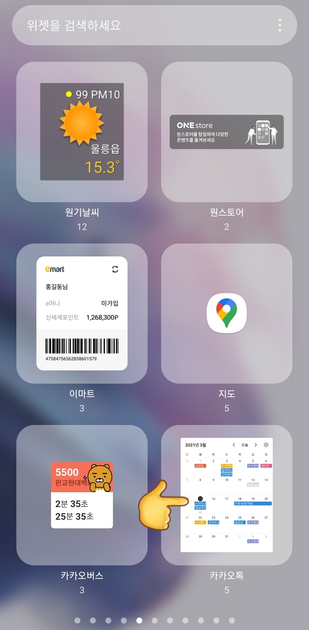 1) 핸드폰 바탕화면 빈 공간을 꾹 누르면 위젯이 나온다