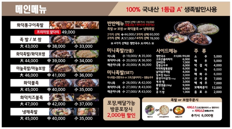 메뉴 : 족탕 22,000원, 족무침 20,000원