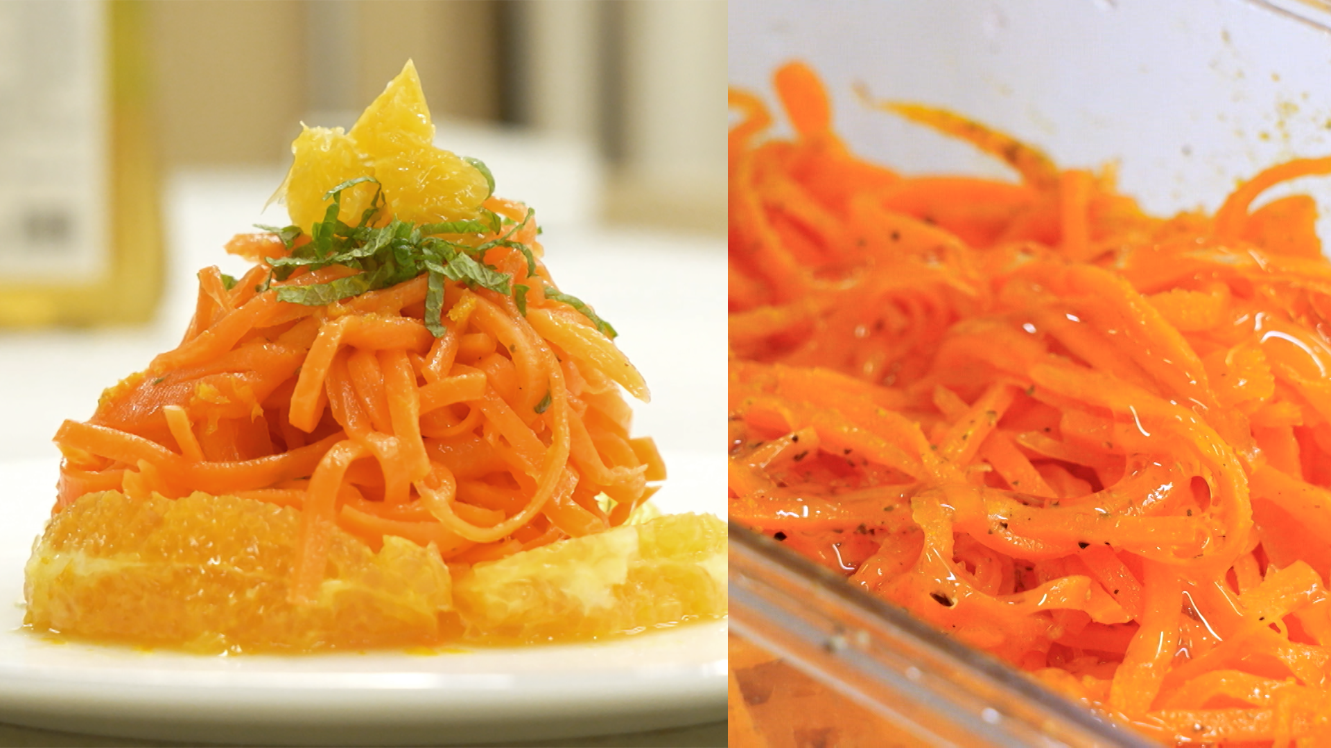 3. 2의 당근 라페에 속껍질을 깐 오렌지 알맹이를 곁들여 마무리한다.