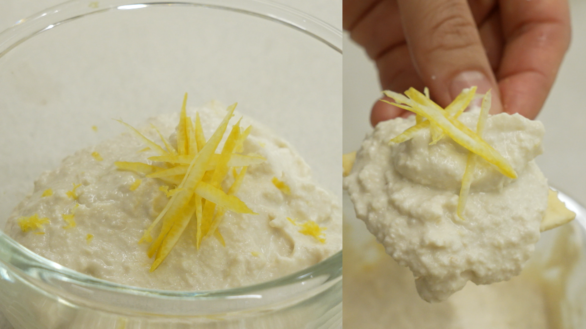 3. 캐슈넛 두부 크림치즈에 레몬 제스트를 취향껏 뿌려 섞어주면 완성!