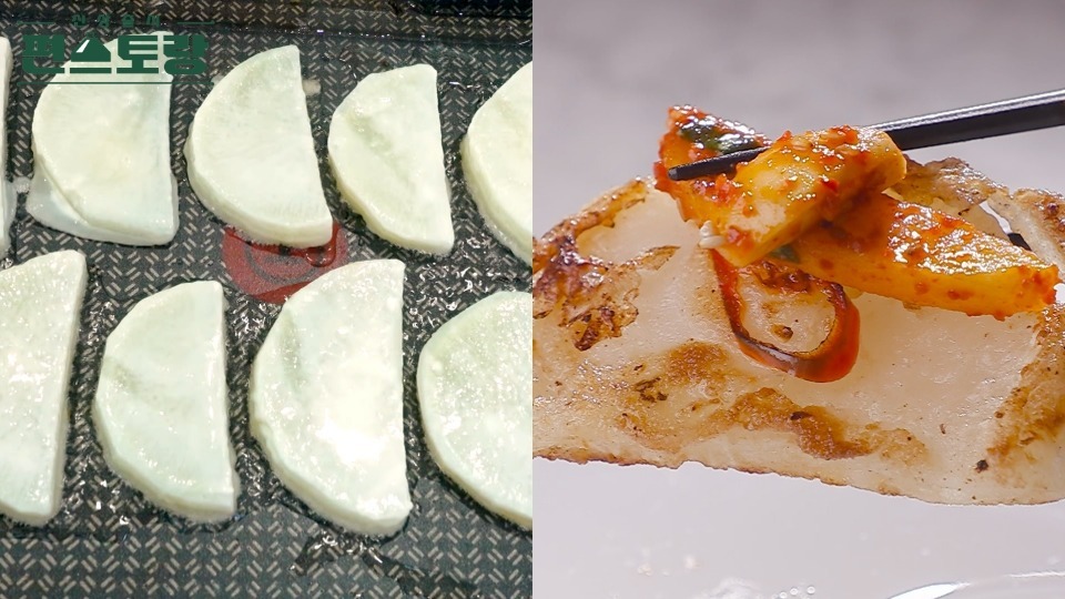 (*식용유와 들기름을 섞어주면 무전을 더욱 고소하게 구울 수 있어요!)