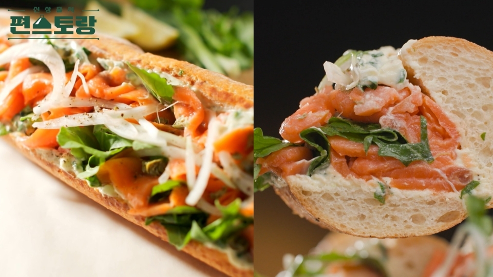 ※ 훈제 연어는 구겨넣어야 맛있어보입니다!