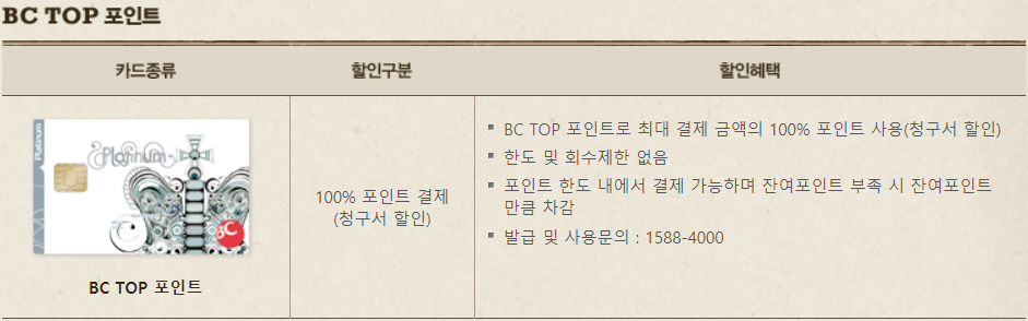 BC TOP 포인트와 삼성카드 포인트로는 100% 결제가 가능하다