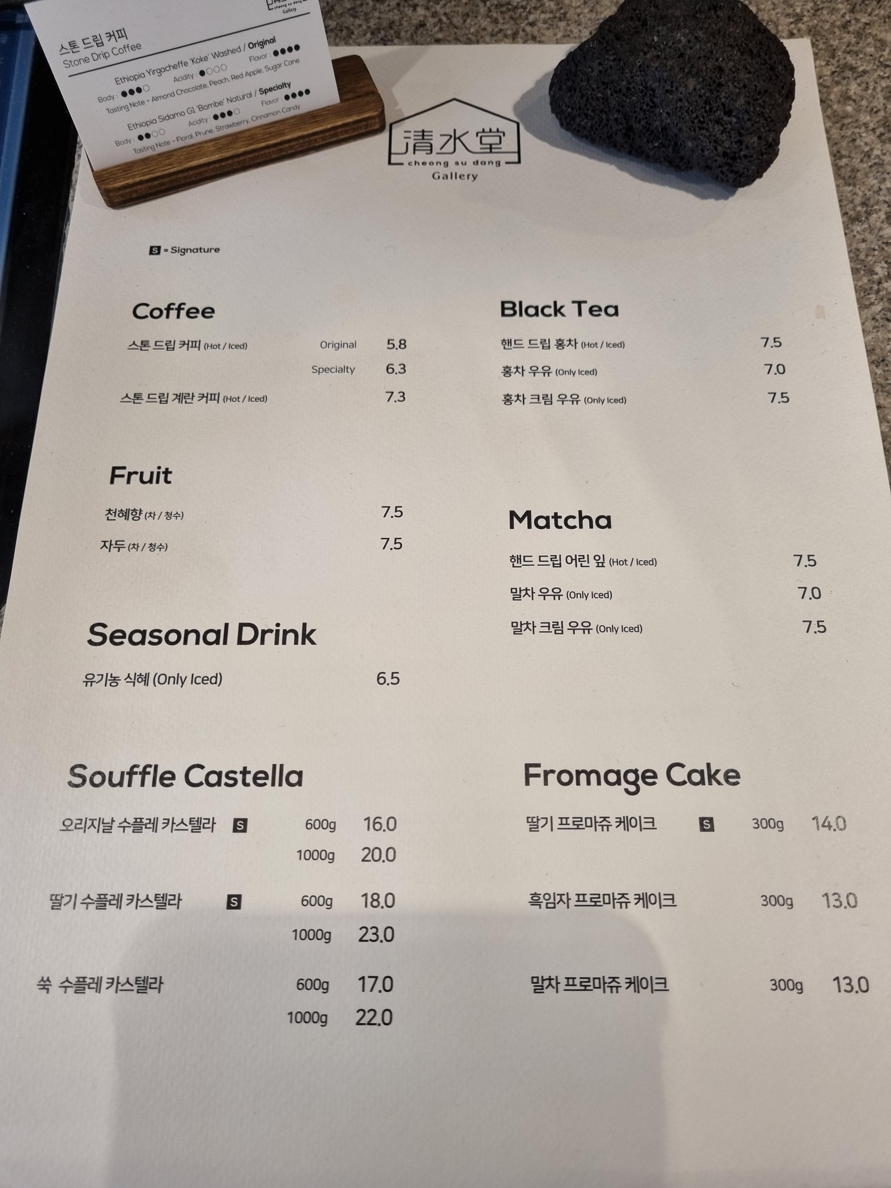 청수당 커피 종류는 2가지이고 다양한 음료가 준비되어 있다