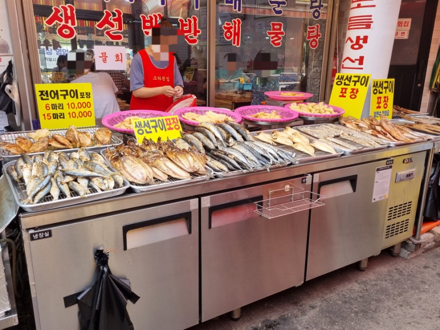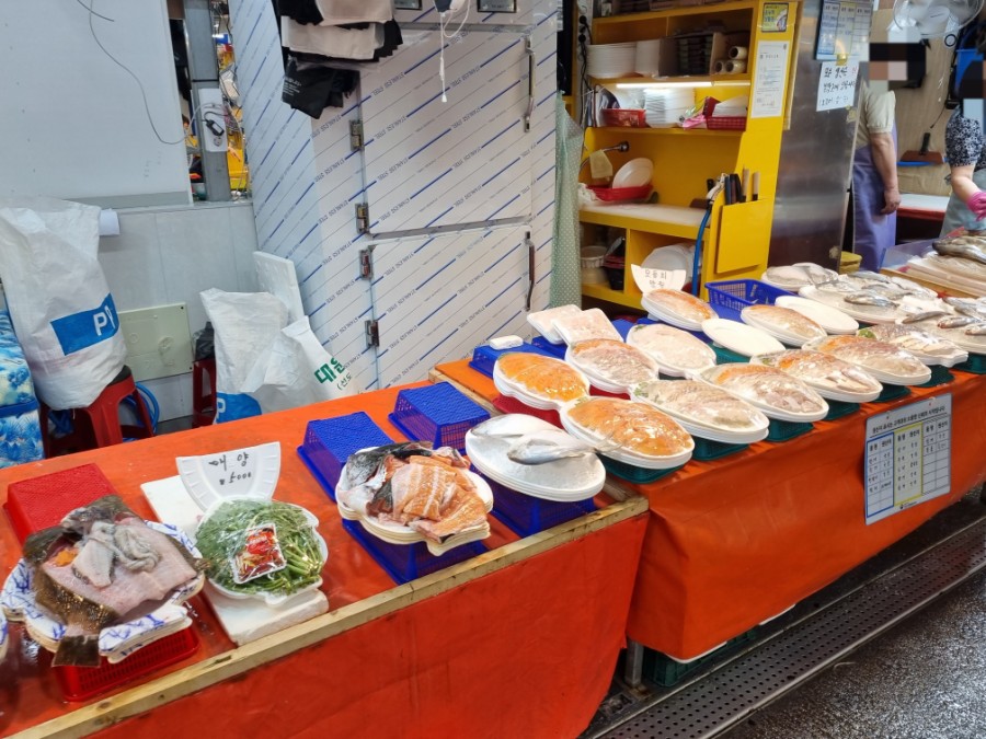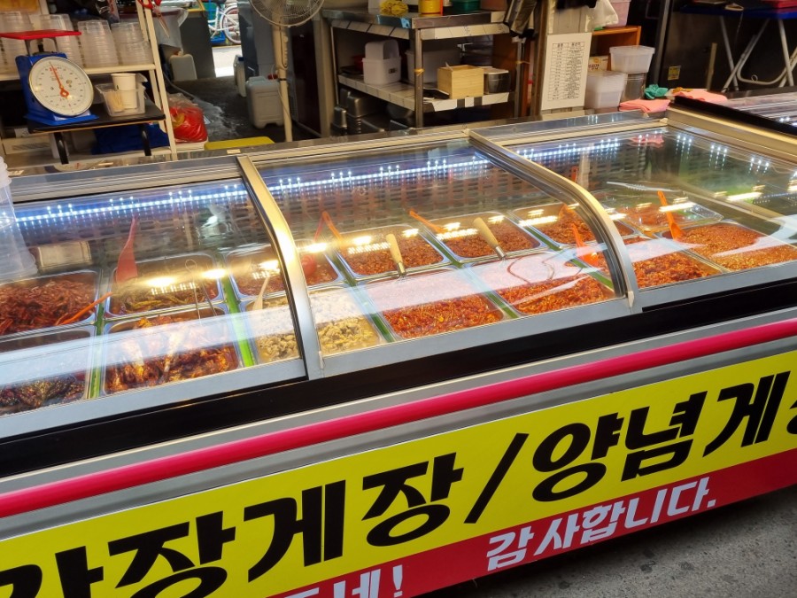 간장게장, 손질되어 있는 회, 젓갈류, 생선구이 등 다양하게 판매 중이다