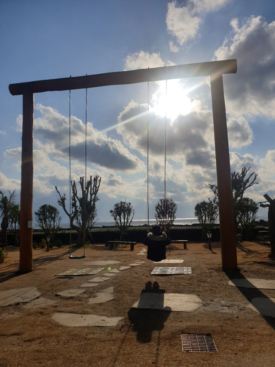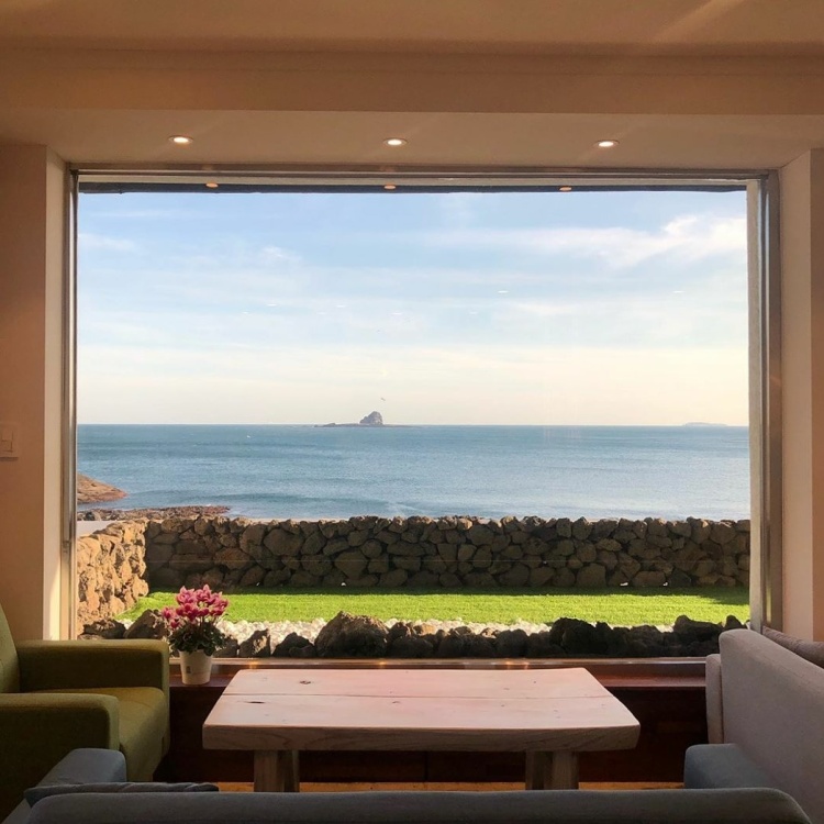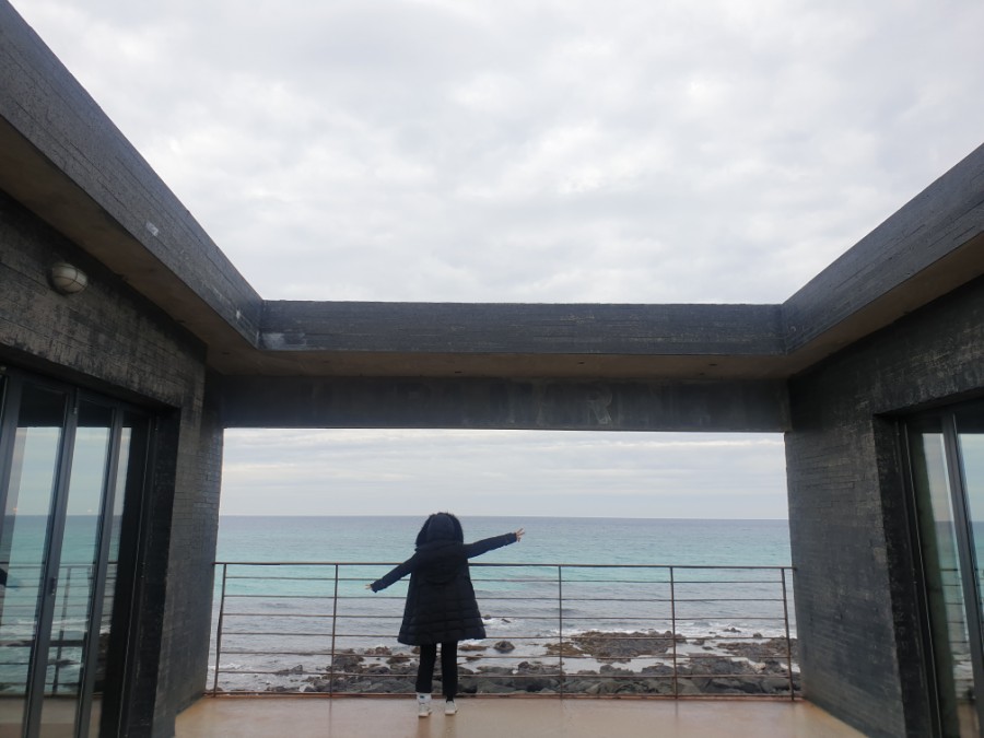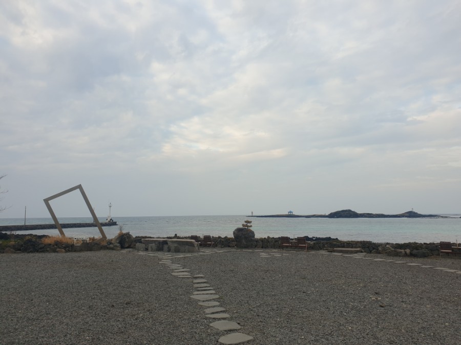 구름 낀 날씨여서 햇빛은 없었지만 넓은 정원에서 액자에 비쳐지는 바다가 참 이쁘다
