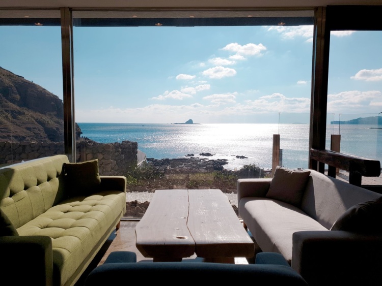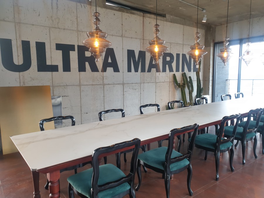 울트라마린 인테리어는 이곳저곳 다니며 구경할 곳이 많아 사진 찍을 곳도 다양했고 바다뷰인 카페는 뭔들 이쁘다