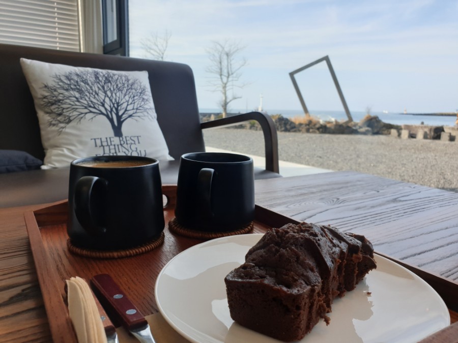 새별오름을 다녀와서인지 커피가 맛나고 도지마롤도 맛나다 생크림이 찐덕하다