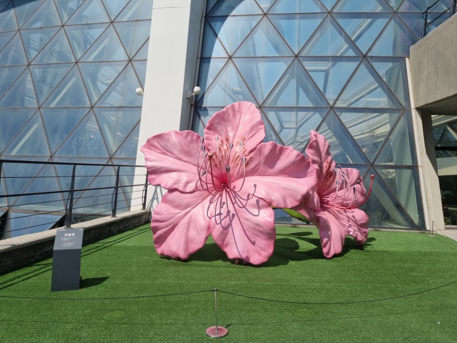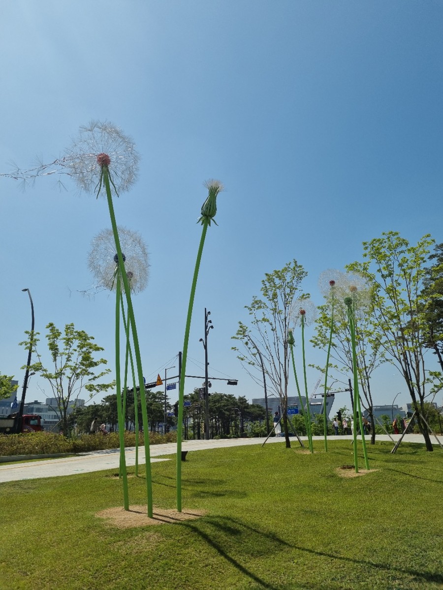 입장권 구매 후 들어가기 위해 서는 줄과 옆에 있는 민들레 조형물 포토존이 있다