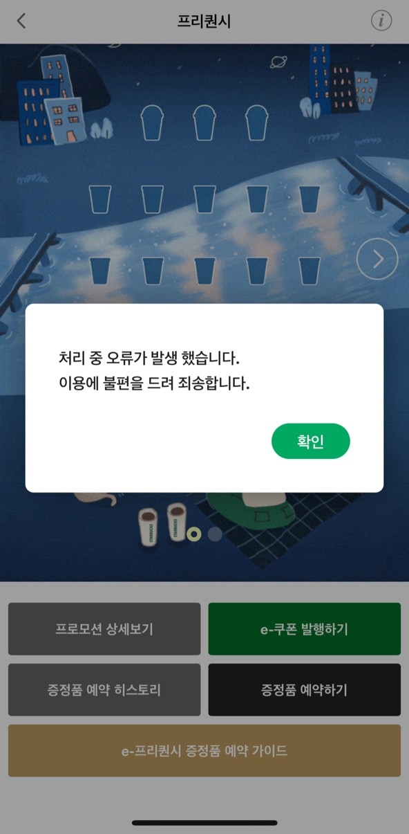 아까와 같이 오류 창 나오고 대기 안내 나온다