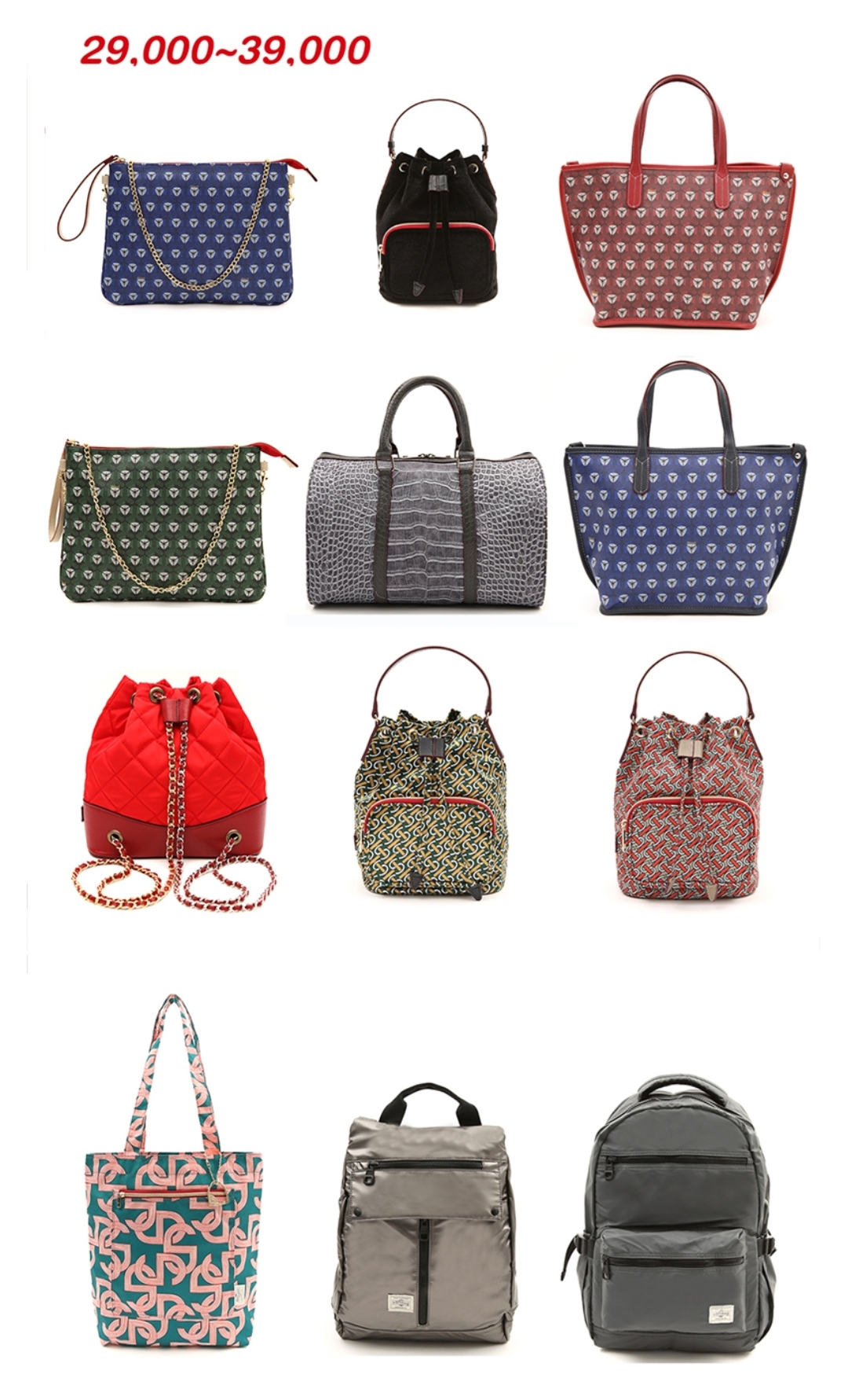 3만원대에는 클러치, 복조리백, 에코백, 백팩이 있다
