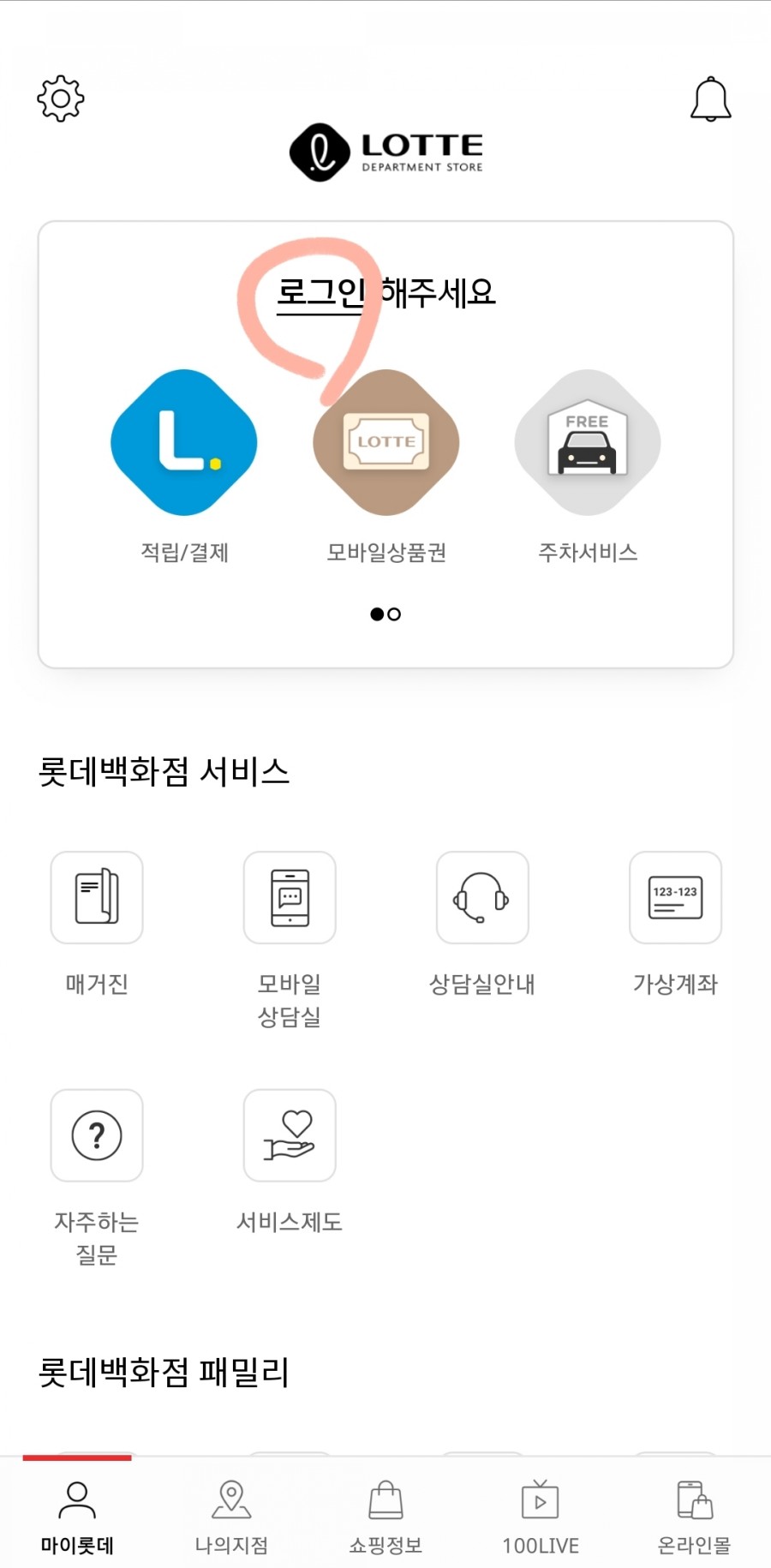 1) 롯데백화점 어플 로그인 (회원가입 필수)