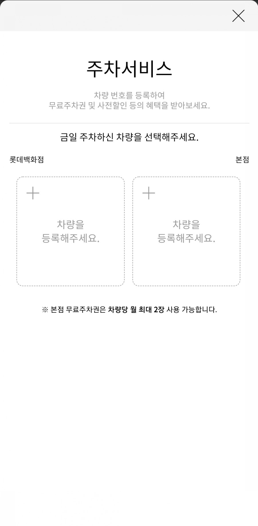무료 주차 이용권을 월 2시간 / 2회권을 받을 수 있다
