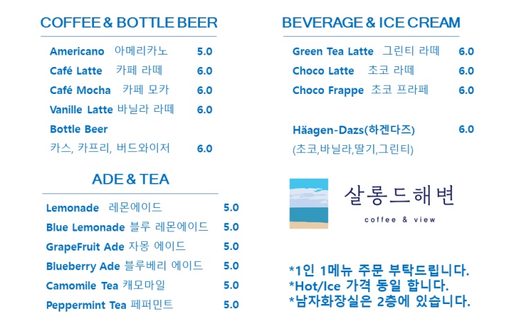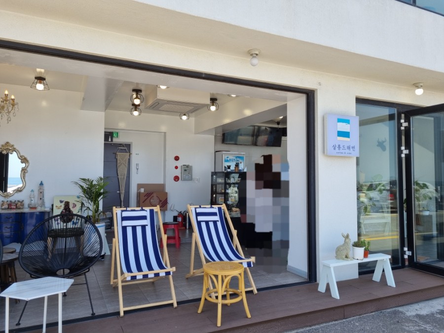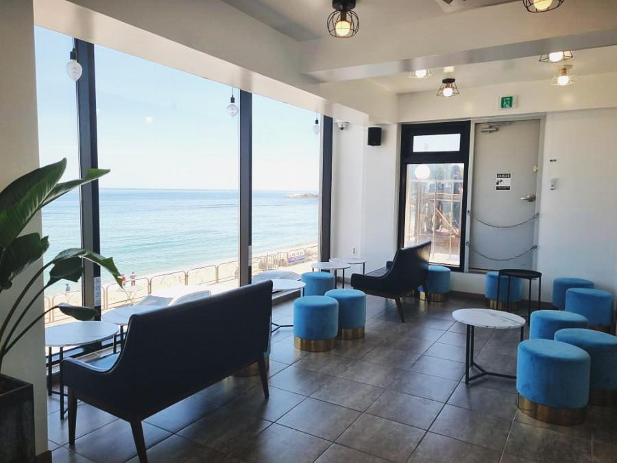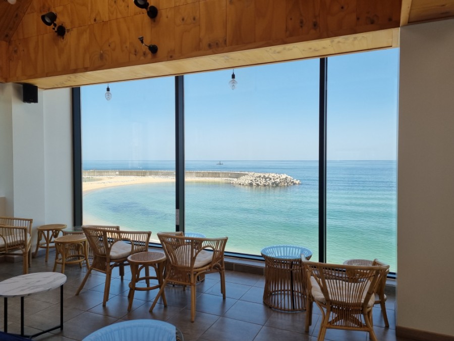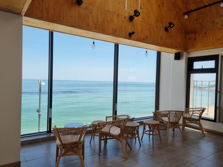 살롱드해변은 바다쪽 방향은 모두 통유리로 되어 있다