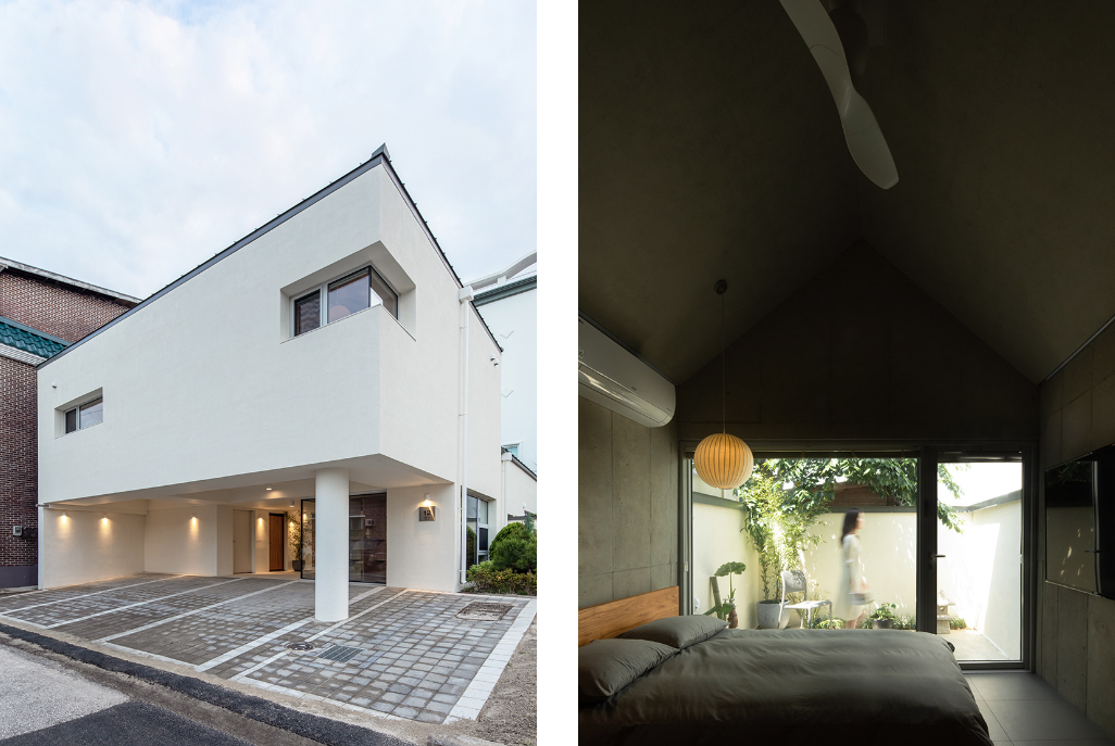 하늘을 투영시킨 듯한 아름다운 바다, 켜켜이 쌓인 백사장 모래를 형상화한 지상층 진입공간,
